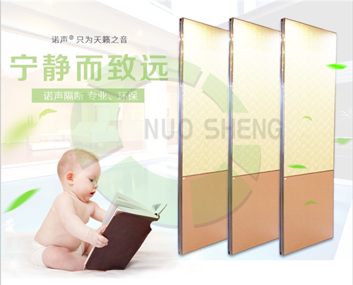 諾聲隔斷(活動屏風)可分為360度轉彎全方向單片式或單方向雙片式兩種。頂部采用65型、80型、100型或超高型道軌及吊輪,可以全方向、多角度靈活分割空間。屏風邊框企料等一切采用6063T6標號鋁合金材料加工、制作,為同行業中最高標號材質。
